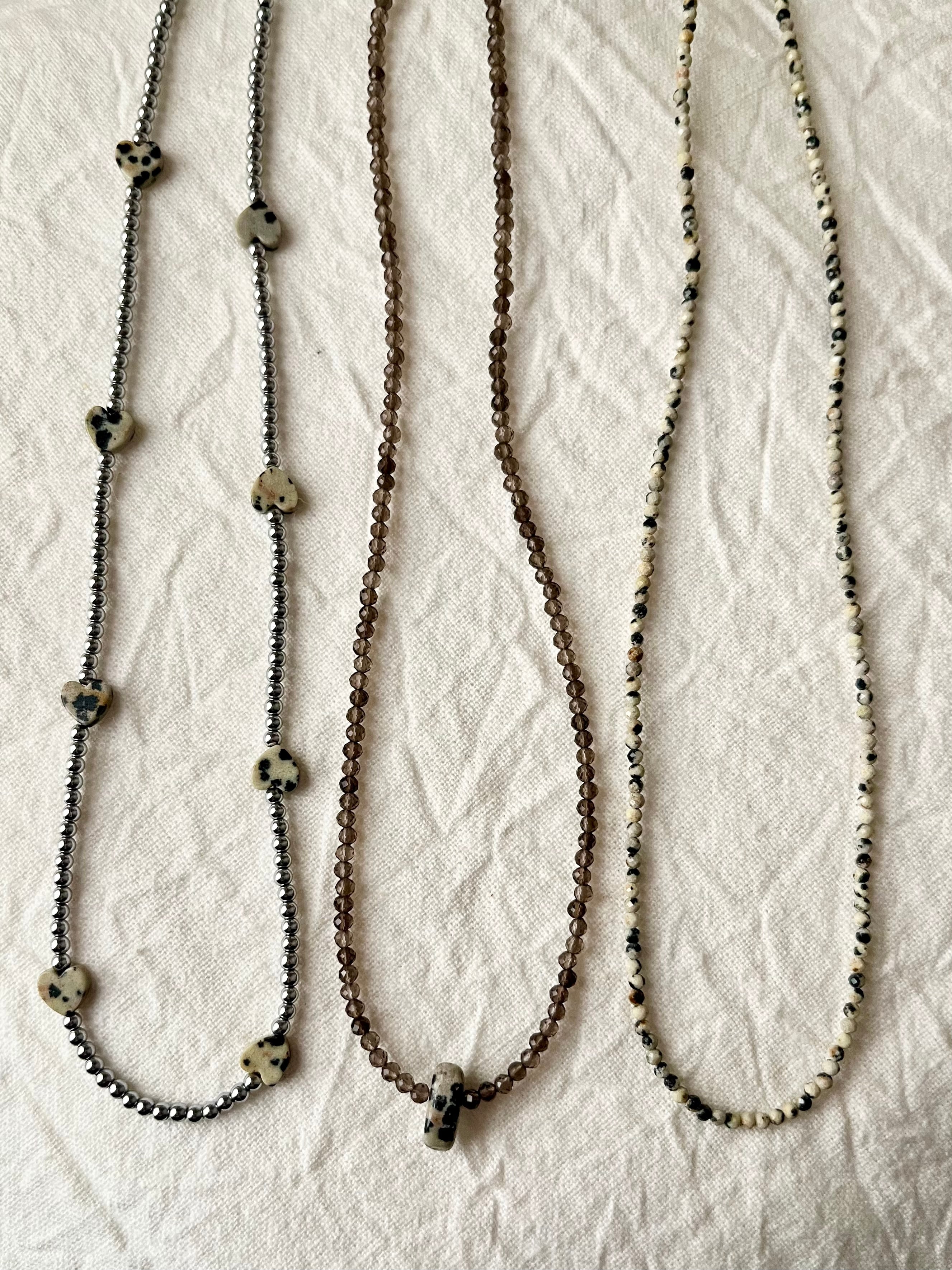 ヘマタイト×ダルメシアンジャスパーのハートの石のネックレスです。(左)